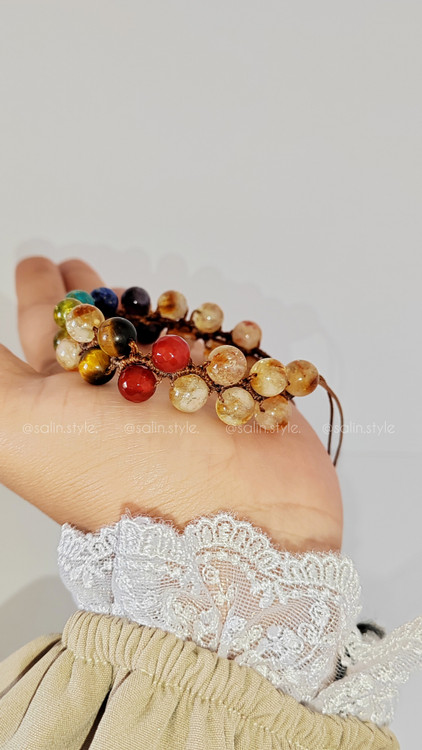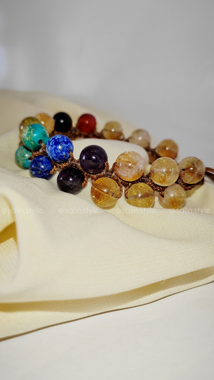 دستبند 7 چاکرای درجه یک با سنگ سیترین اصل