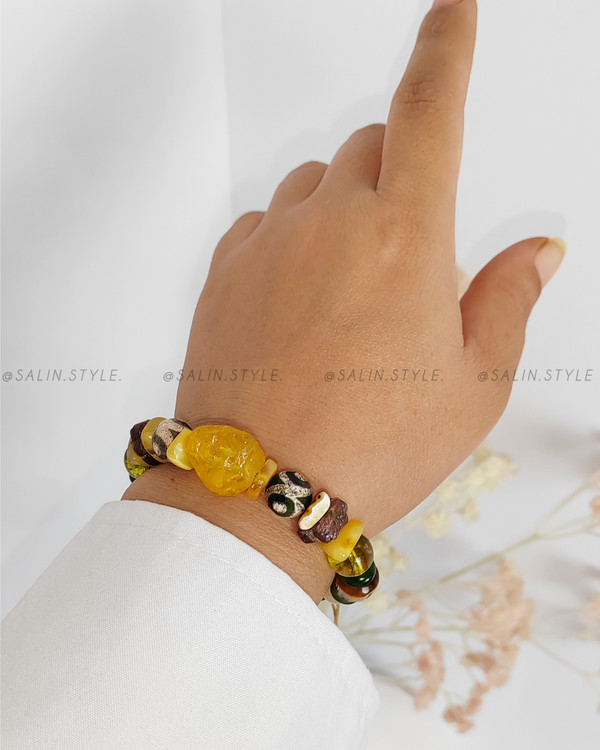 دراین دستبند زیبا 9 سنگ اصل و درجه یک یکار برده شده که شامل :